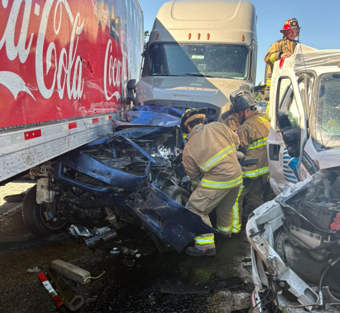 Three 18-wheelers and two passenger vehicles crashed on Interstate 20 in Lindale on Thursday. The Lindale Fire Department ...