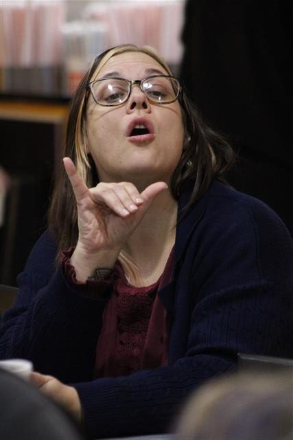 - Andrea Short, interpreter coordinator for the Tyler Deaf and Hard of Hearing Center, uses American Sign Language (ASL) to communicate during a Lindale Deaf Chat event in January.
