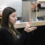 Andrea Short, interpreter coordinator for the Tyler Deaf and Hard of Hearing Center, uses American Sign Language (ASL) to communicate during a Lindale Deaf Chat event in January. (Jennifer Scott/ETX View)